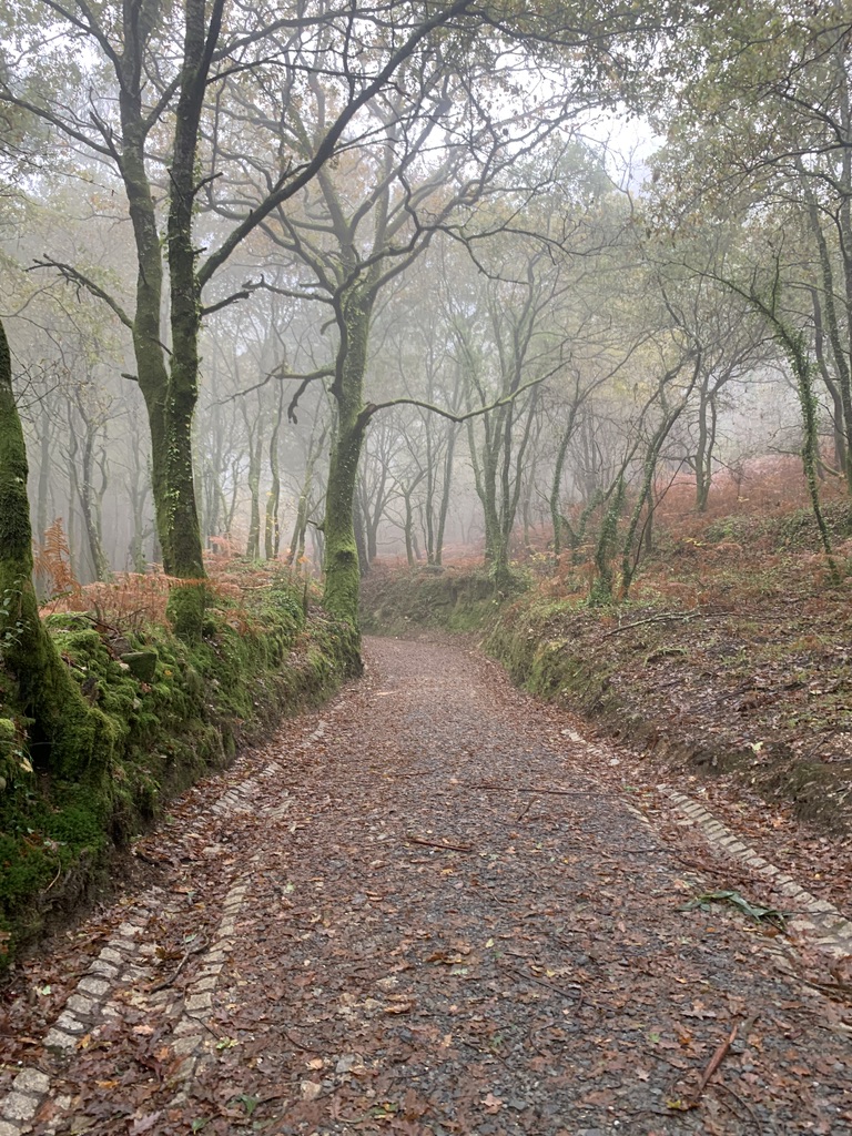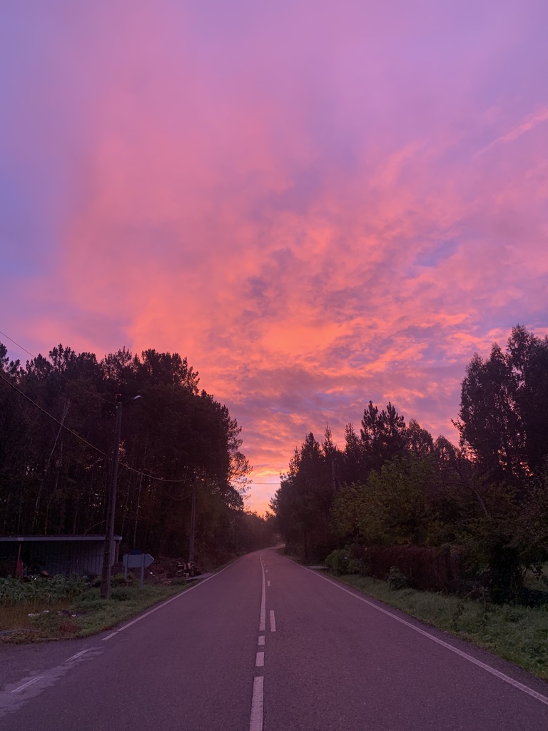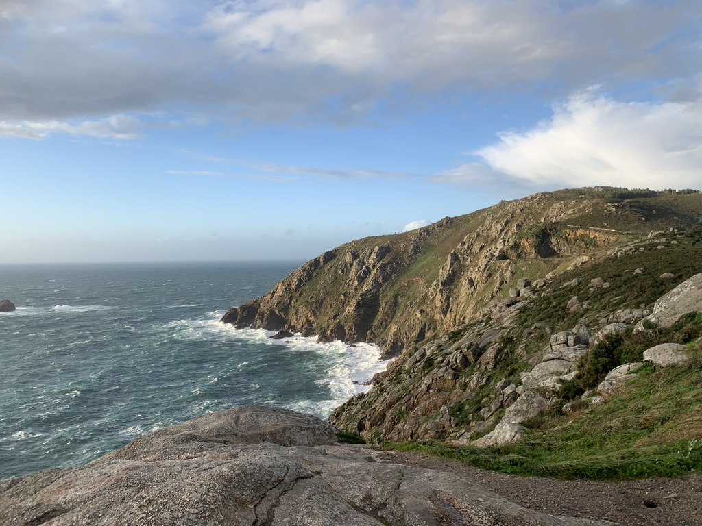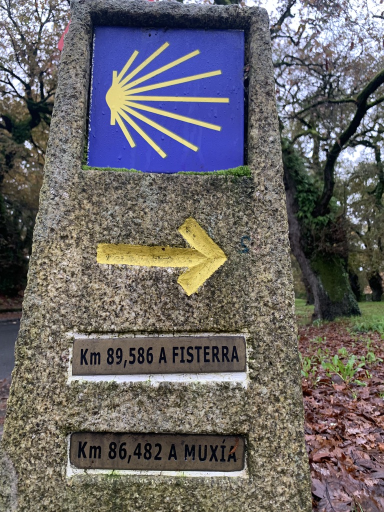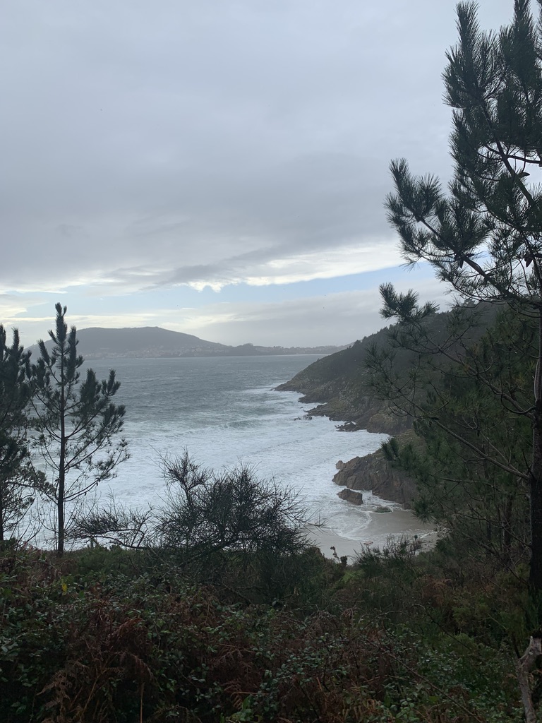 Mais quoi qu’il en soi ce fut magique. C’est donc les yeux remplis d’étoiles, une nouvelle épaisseur de vêtements sur le dos et le coeur tout bizarre que je repars de Santiago de Compostelle pour rejoindre Finisterre puis Muxia. Je rajoute environ 100-120 km de plus à mon périple. Mais ils sont nécessaires pour faire un trait d’union entre l’expérience vécue et la « vraie » vie.