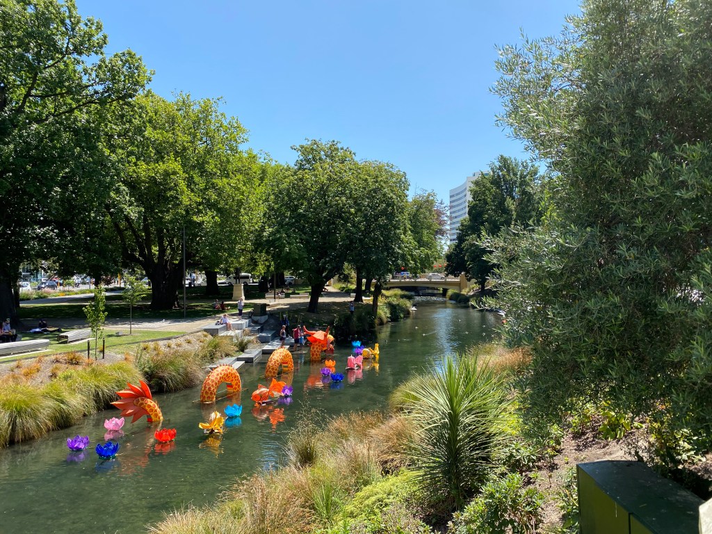 Nous avons la chance de découvrir Christchurch sous le soleil. Cette ville a subi un tremblement de terre en 2011. Elle s’en relève avec brio bien que 185 personnes y aient perdu la vie et que 80% du centre ville soit voué à la démolition.