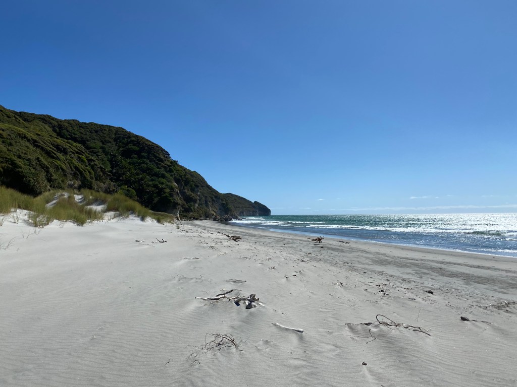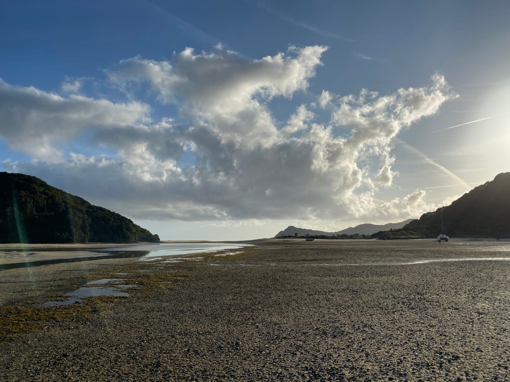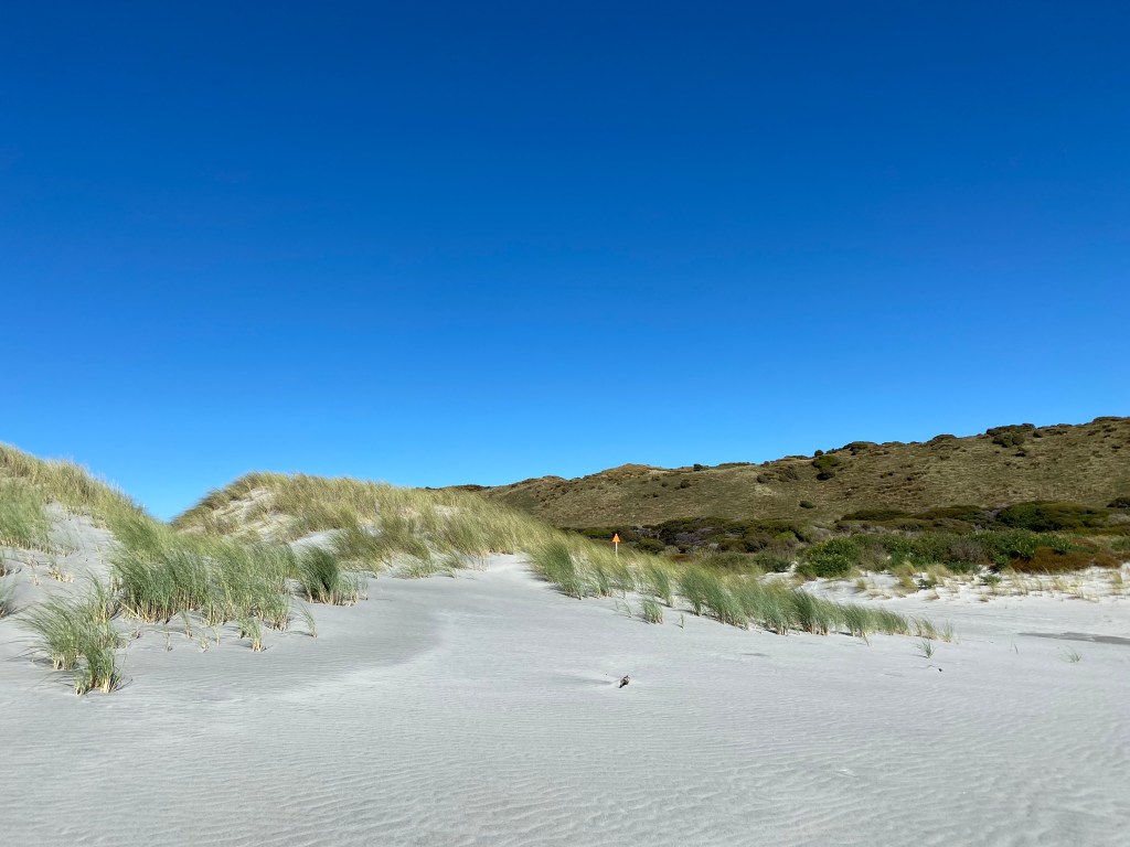 Puis je suis allée me balader à Farewell Spit qui est la péninsule la plus au nord ouest de l’île encadrant la Golden Bay. C’était très beau, ensoleillé et venteux. Il y a beaucoup mais vraiment beaucoup de signes noirs, c’était extraordinaire.