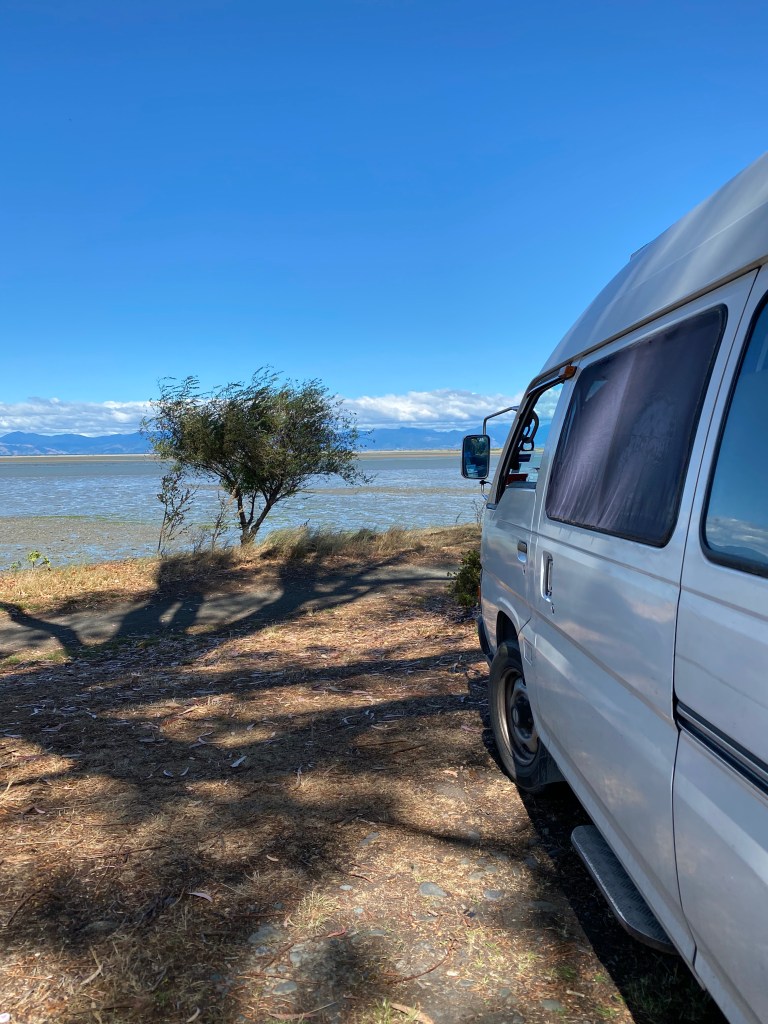 Mon dimanche fut donc ponctué de courses, de ménage, de cuisine et de déco. Mais le cœur enjoué après une petite nuit en free camp non loin de Takaka. Ça faisait longtemps que je ne m’étais pas garé à un autre endroit qu’à la « maison ». Ce petit retour à la liberté était juste génial.