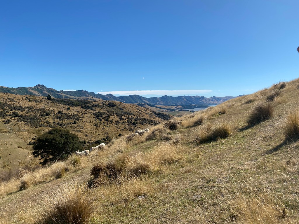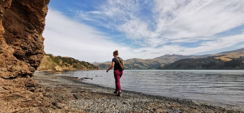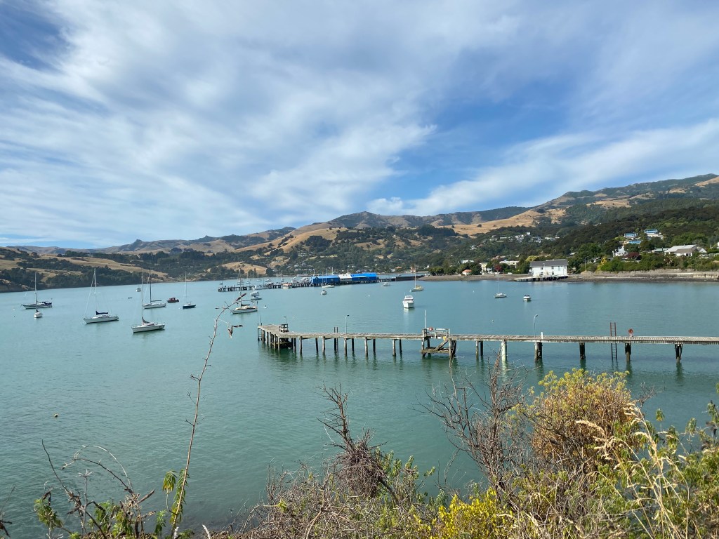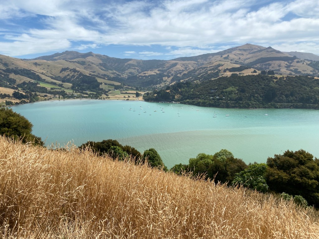 Puis ça se tasse, il fait moins chaud et je peux rouler sans cette pièce même si Arnold chauffe de temps en temps. Je décide donc de me balader pas trop loin de Christchurch histoire d’être à proximité d’un garage. La Péninsule de Banks me tend tout gentiment ses bras afin de découvrir collines, mer et lacs. C’est magnifique et le petit village d’Akaroa (soit disant ex-colonie française) est à tomber…