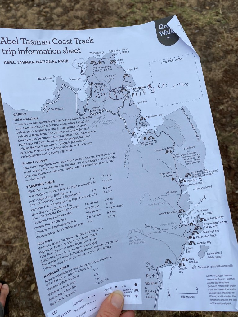 Le Abel Tasman n’est pas une boucle donc il faut réfléchir à comment rejoindre son moyen de transport déposé à une extrémité du parcours. Bus ou water taxi ? Pour nous ce sera bus, pour profiter de l’ensemble du trail sinon il fallait arrêter avant. Nous ne profiterons par contre, pas de la vue de notre trek par la mer…