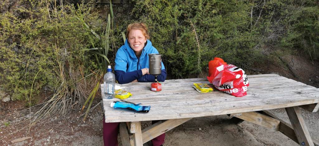 Je garde la nourriture dans mon sac et le sac sur mon dos pour ces kilomètres en plus. La mouette du premier jour, les Weka tout au long des pauses et la faune nous entourant, nous ont fait prendre conscience qu’il ne fallait rien laisser dans son sac. Même emballé dans des sacs hermétiques et non-transparents. Ils sont malins ces oiseaux.