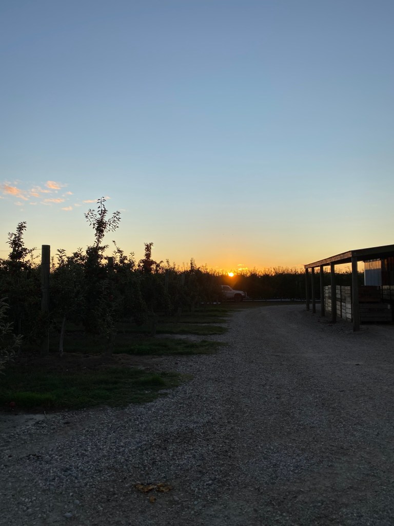 Nous y voilà. Après avoir rencontré, la veille, Pete (le grand boss) et son accent terrible (l’accent néo-zélandais est cossu) ; j’attaque à 7h30 lundi matin le ramassage de pommes !