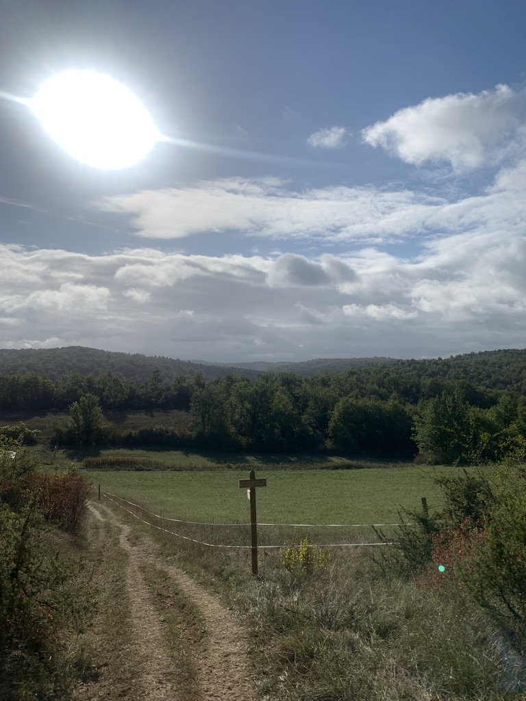 Ce début de semaine est synonyme de petites étapes de marche. Je prends la décision de faire les étapes normées : 20-25 km par jour. Ça me permet de récupérer un peu physiquement après ces dernières semaines à faire des journées entre 35 et 40 km par jour. C’était chouette mais usant au final. Un rythme plus « normal » me fait arriver sur les coups de 13-14h au point de chute (même en faisant plusieurs pauses sur le chemin). Je m’ennuie un peu (j’avoue), mais je prends le temps de bouquiner et de profiter des villages que je traverse.